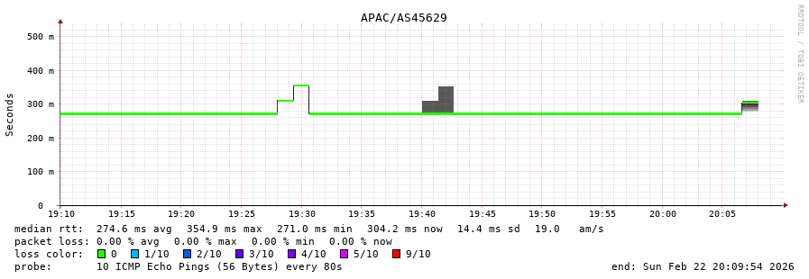 43. Median RTT 0.294 seconds