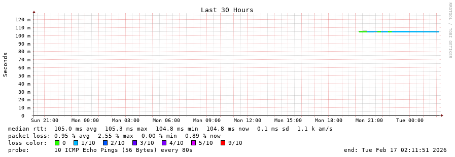 17 > 196.190.130.83 (196.190.130.83) [AS24757] 104.423ms 104.595ms 104.838ms