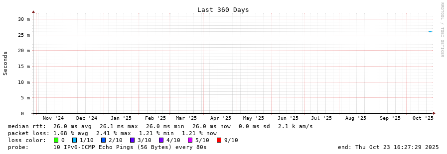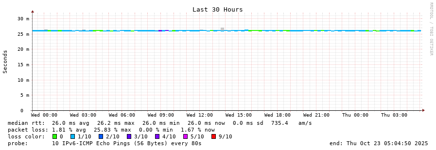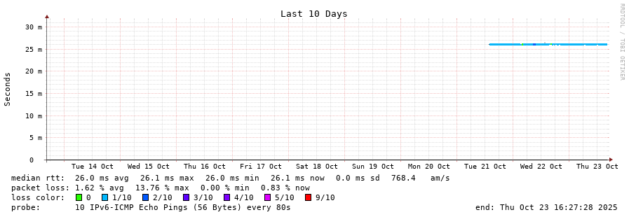 traceroute to 2001:4350:1:1::ff90 (2001:4350:1:1::ff90), 30 hops max, 80 byte packets - Generated at 2025-10-23 02:00:01