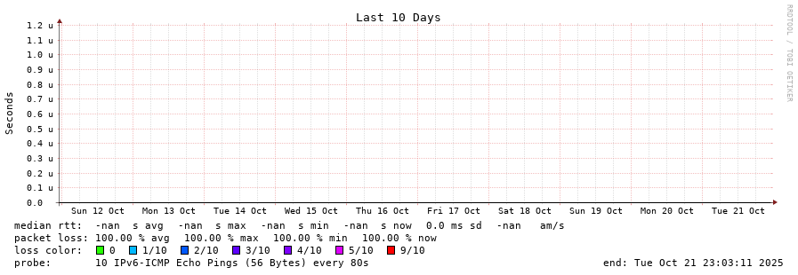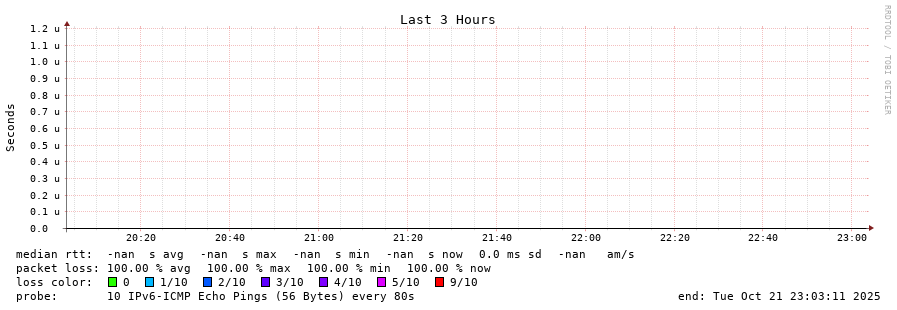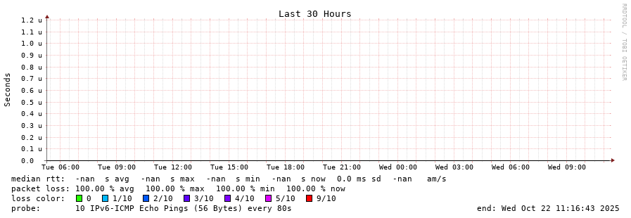traceroute to fd78:93ae:fdfe::2 (fd78:93ae:fdfe::2), 30 hops max, 80 byte packets - Generated at 2025-10-21 22:45:01