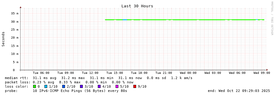 traceroute to 2001:b68:d::28 (2001:b68:d::28), 30 hops max, 80 byte packets - Generated at 2025-10-21 22:45:01