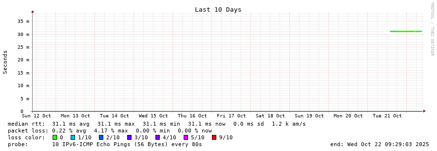 3 > fdff:f000:31::1 (fdff:f000:31::1) [*] 0.640ms 0.448ms 0.429ms