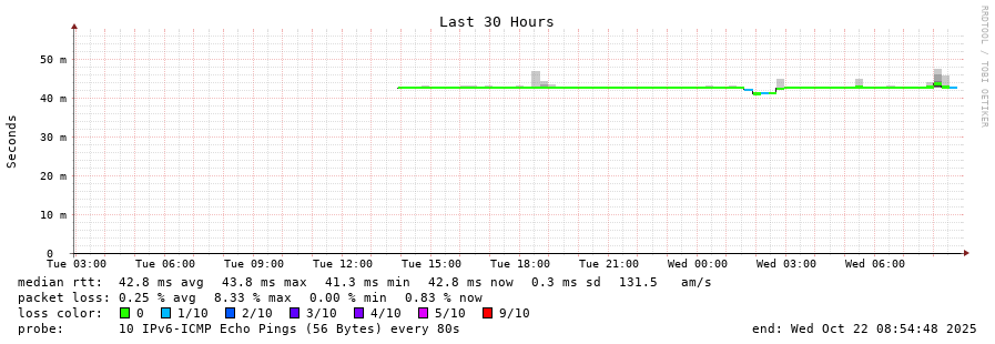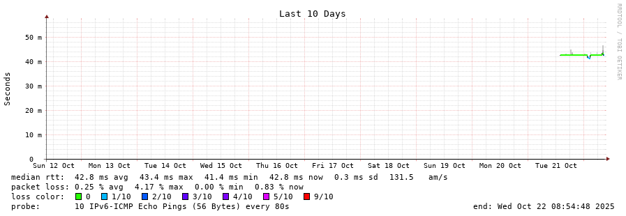 traceroute to 2a0c:9a40:8610:e3f::1 (2a0c:9a40:8610:e3f::1), 30 hops max, 80 byte packets - Generated at 2025-10-21 23:00:01