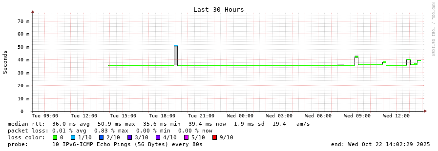 traceroute to 2a03:8f84::f1b6:9702:29c:9062 (2a03:8f84::f1b6:9702:29c:9062), 30 hops max, 80 byte packets - Generated at 2025-10-21 22:45:01
