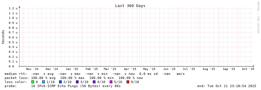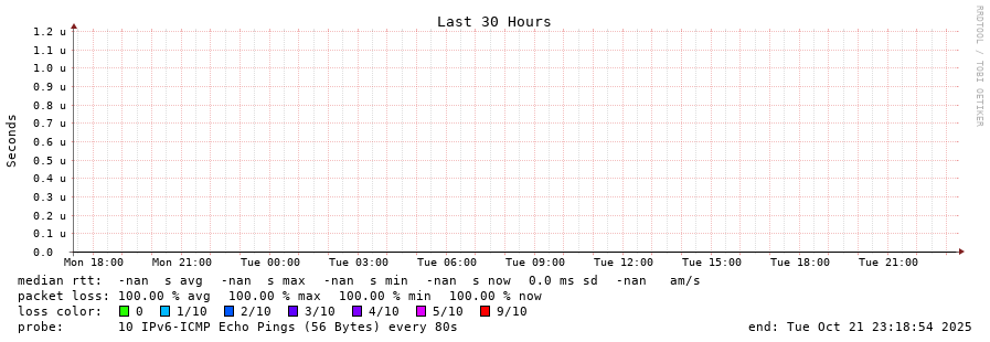 traceroute to fd9b:f75:a3d5::2 (fd9b:f75:a3d5::2), 30 hops max, 80 byte packets - Generated at 2025-10-21 22:45:01