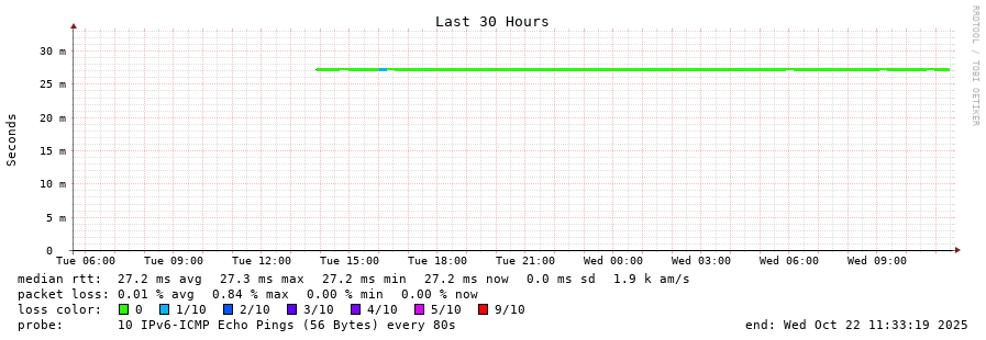 traceroute to 2a00:c30:bbbb:d::2 (2a00:c30:bbbb:d::2), 30 hops max, 80 byte packets - Generated at 2025-10-21 23:00:01
