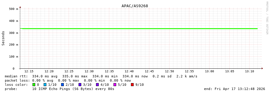 13. Median RTT 0.334 seconds